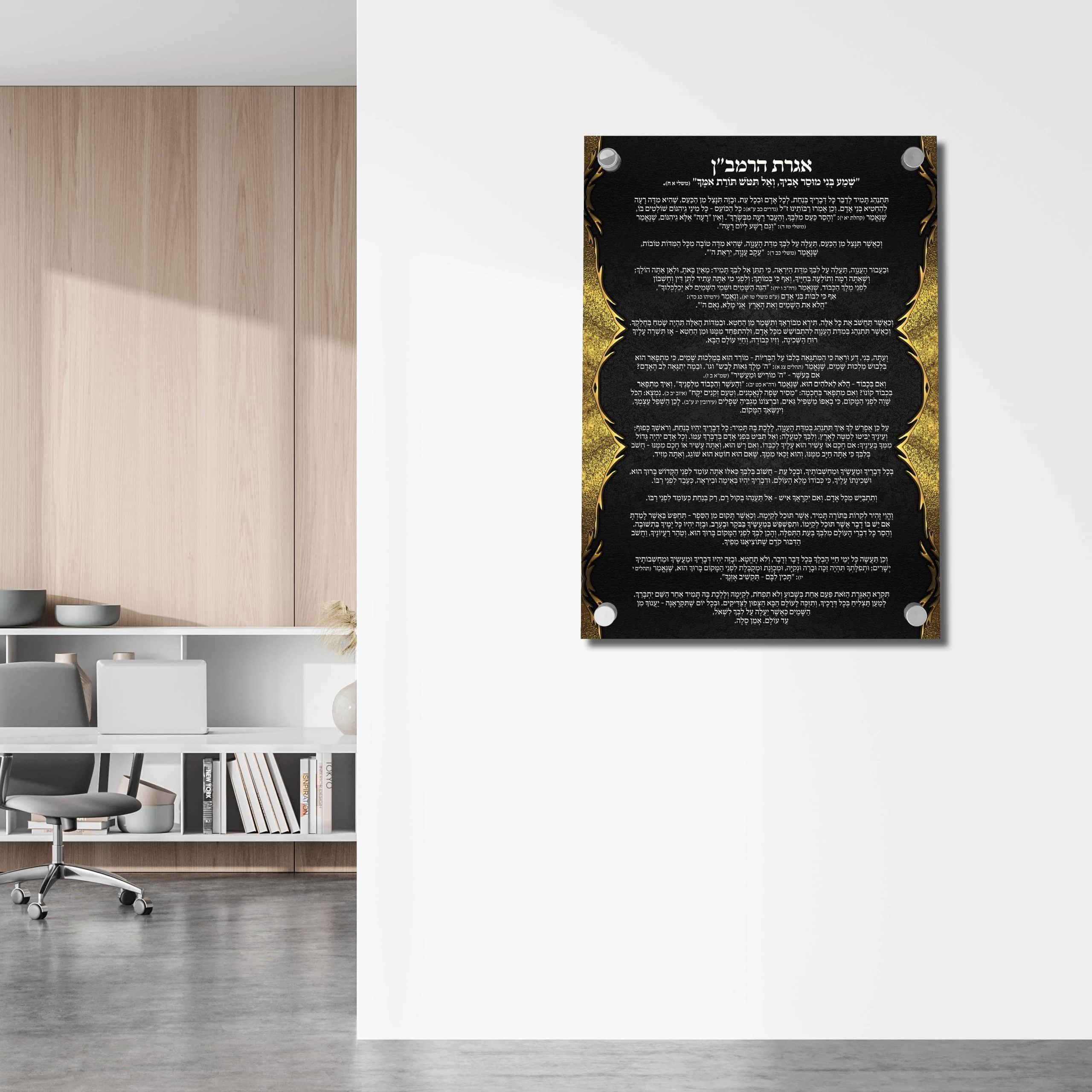 אגרת הרמב"ן רקע שחור עם עיטור זהב בצדדים כיתוב בלבן
