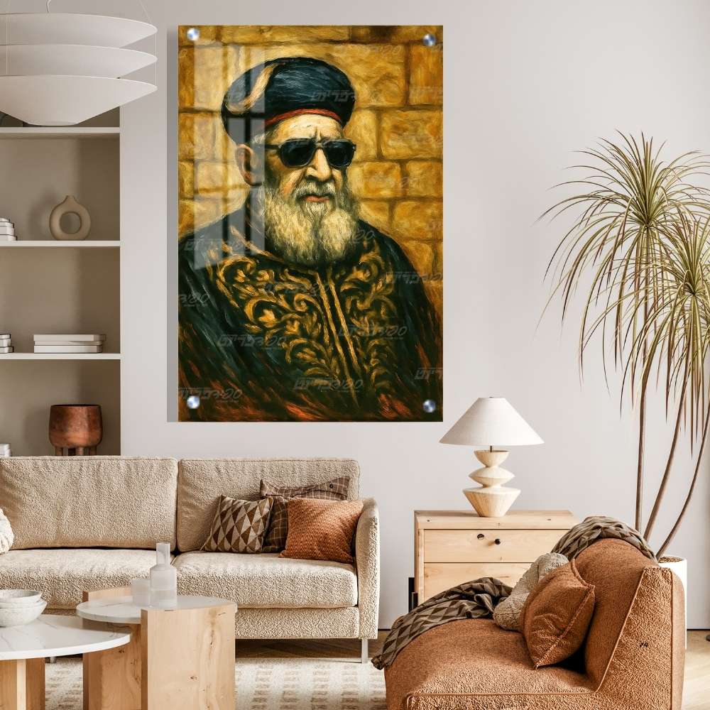 הרב עובדיה יוסף – ציור מים גווני זהב שחור